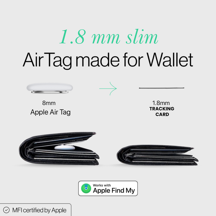 A game-changer in item tracking - this credit card-sized Tracking Card connects seamlessly with the Apple Find My network, ensuring your belongings stay secure.