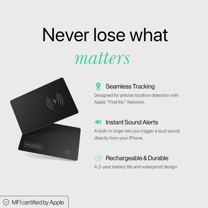 A game-changer in item tracking - this credit card-sized Tracking Card connects seamlessly with the Apple Find My network, ensuring your belongings stay secure.